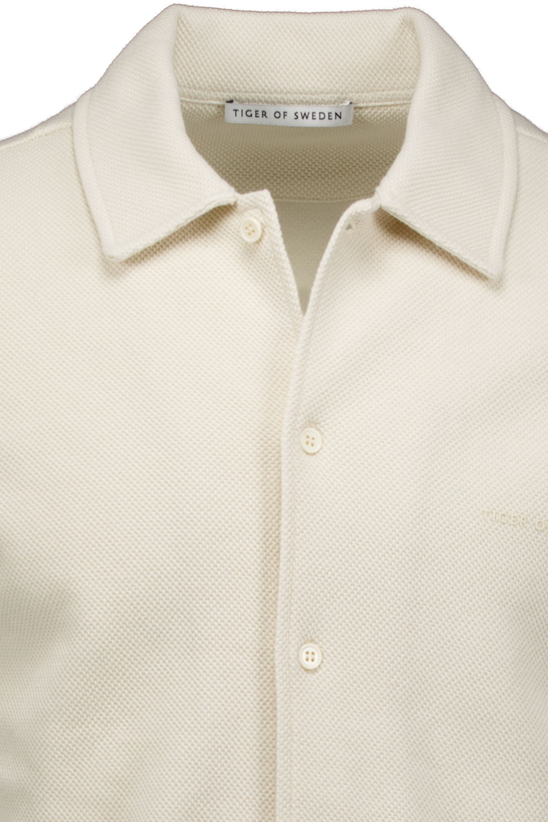 Saint T00734 fra Tiger Man er en stilren kortærmet skjorte til herrer i en normal pasform, der passer til både hverdag og afslappede weekender. Den klassiske krave og den praktiske knaplukning foran giver et friskt, tidløst indtryk, der let kan bruges som bas i et afslappet outfit eller over en tætsiddende t-shirt for et lag-på-lag-look. Et diskret printet logo tydeliggør brandidentiteten uden at dominere helhedsindtrykket, hvilket gør plagget alsidigt og let at bære hver sæson.