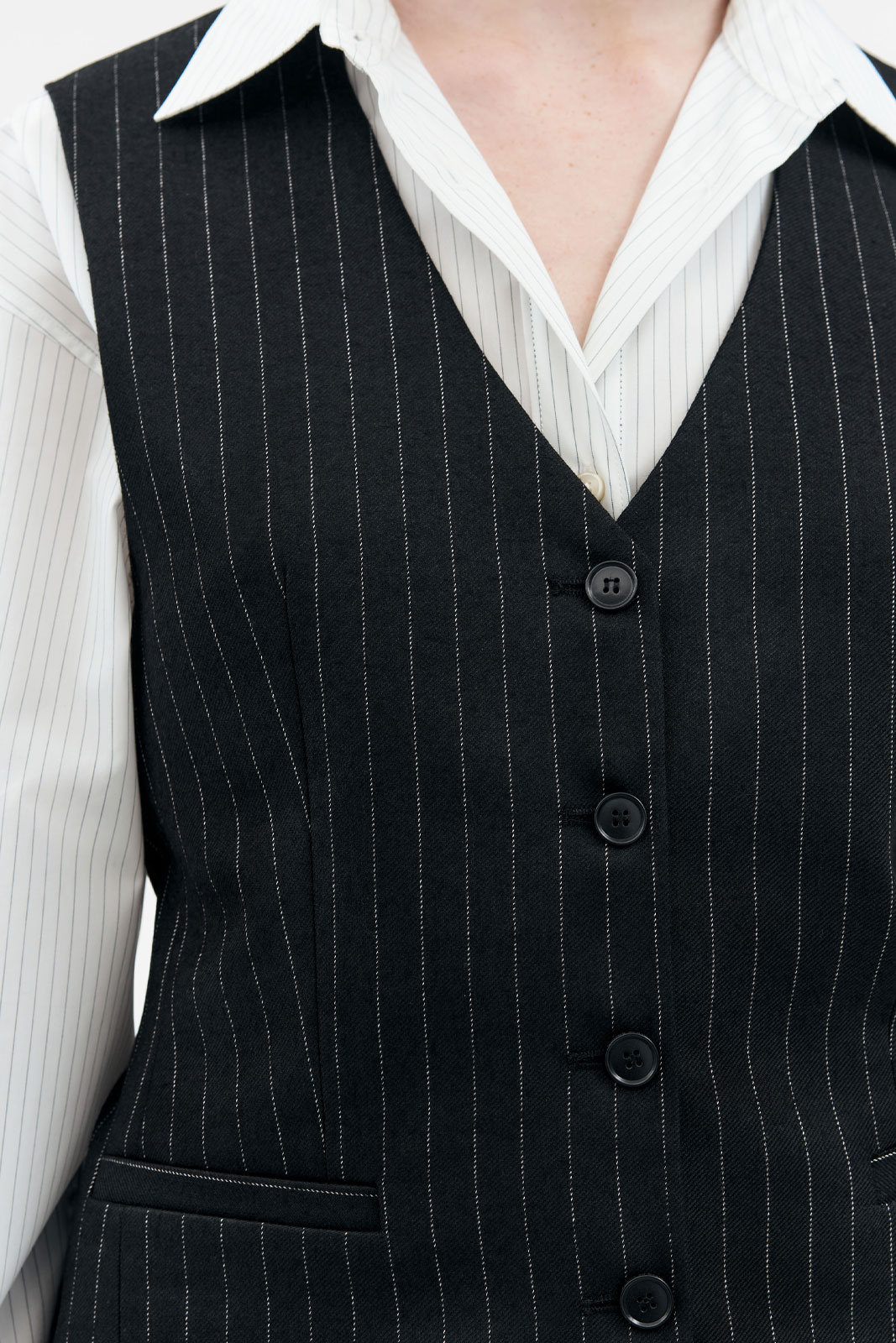- Veste i pinstribet uldblanding