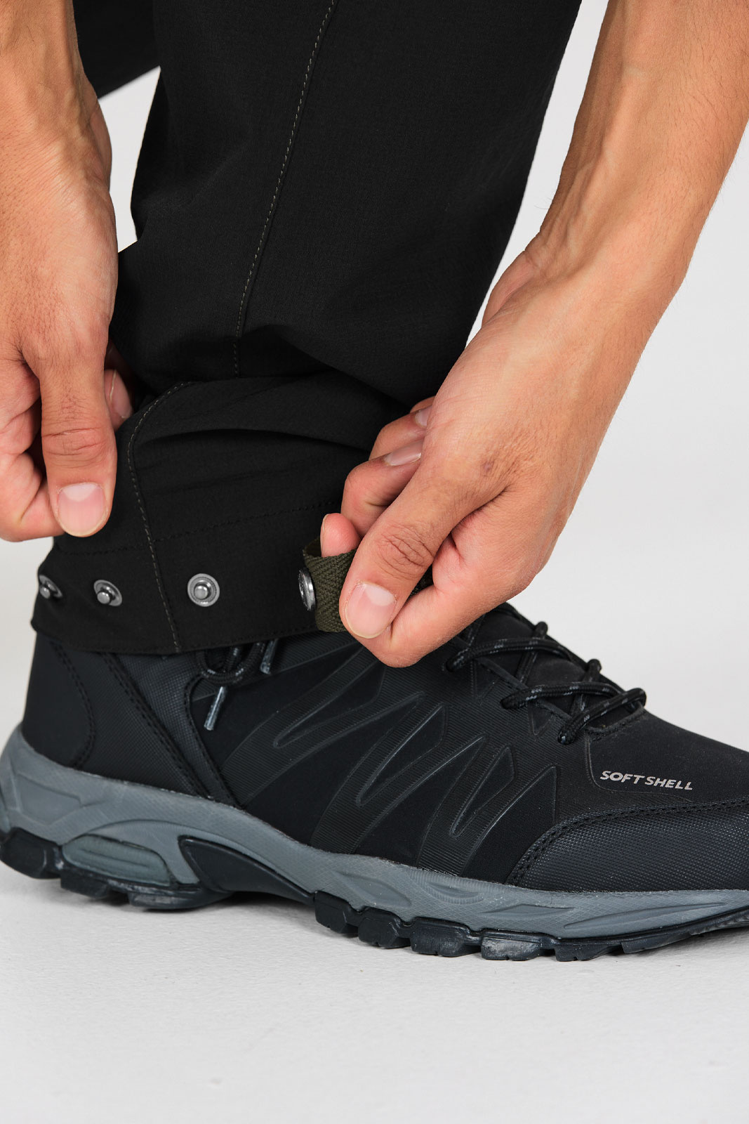 - Spænde med trykknap i buksebenets slut