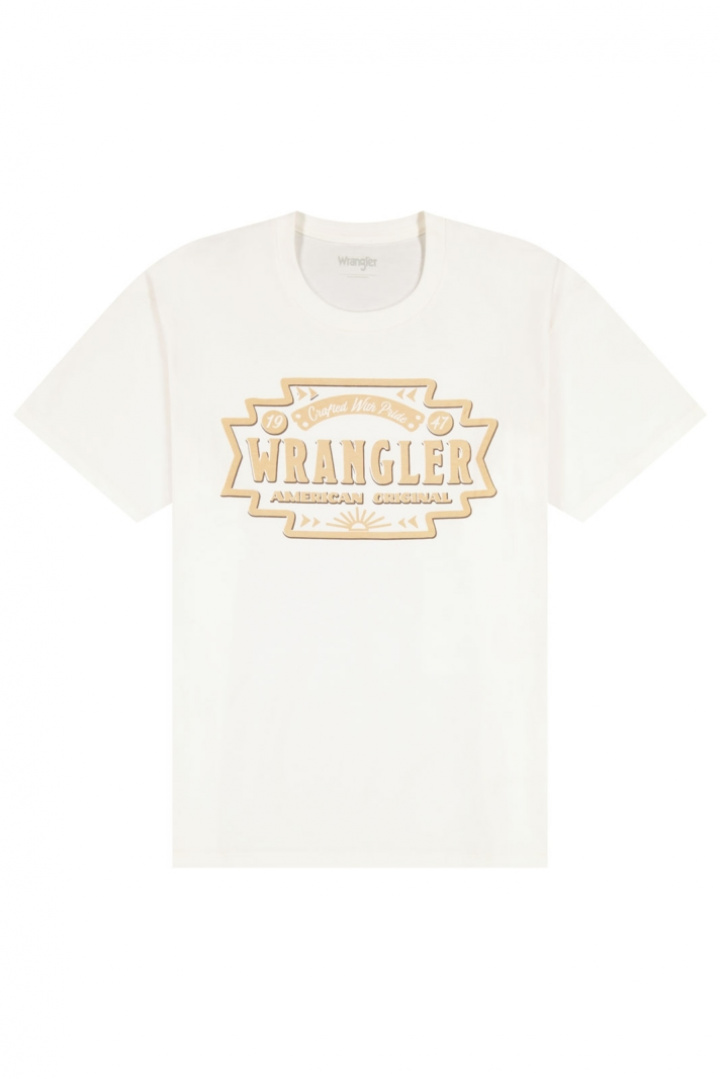 Selv om Wrangler primært er kendt for deres jeans, har de et udvidet sortiment. Du kan matche dine jeans med en Wrangler T‑shirt med tryk. De bliver ofte inspireret af tidsperioder som 70'erne, og det kommer til udtryk på trøjer og T-shirts.
