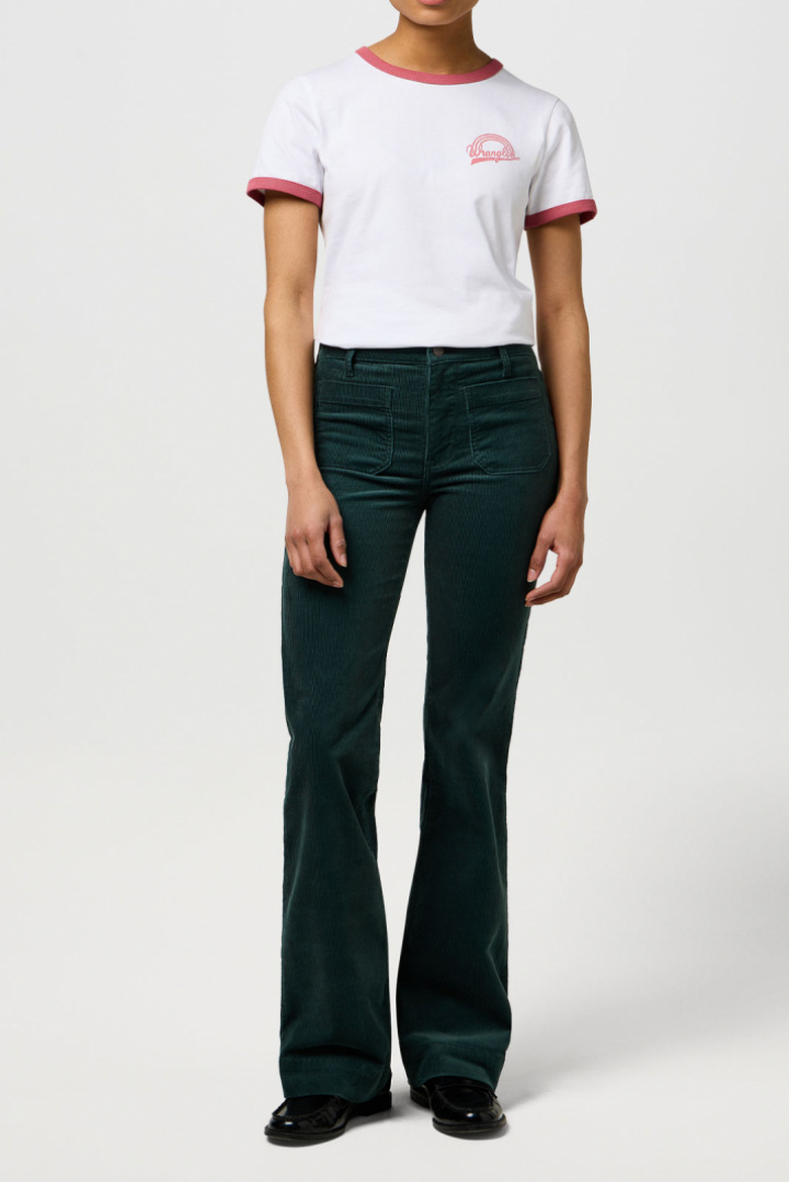 Selv om Wrangler primært er kendt for deres jeans, har de et udvidet sortiment. Du kan matche dine jeans med en Wrangler T‑shirt med tryk. De bliver ofte inspireret af tidsperioder som 70'erne, og det kommer til udtryk på trøjer og T-shirts.