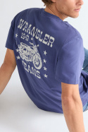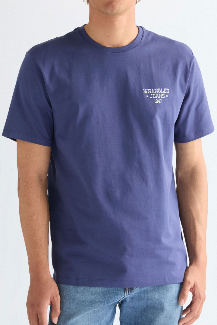 Selv om Wrangler primært er kendt for deres jeans, har de et udvidet sortiment. Du kan matche dine jeans med en Wrangler T‑shirt med tryk. De bliver ofte inspireret af tidsperioder som 70'erne, og det kommer til udtryk på trøjer og T-shirts.