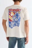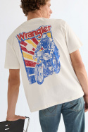 Selv om Wrangler primært er kendt for deres jeans, har de et udvidet sortiment. Du kan matche dine jeans med en Wrangler T‑shirt med tryk. De bliver ofte inspireret af tidsperioder som 70'erne, og det kommer til udtryk på trøjer og T-shirts.
