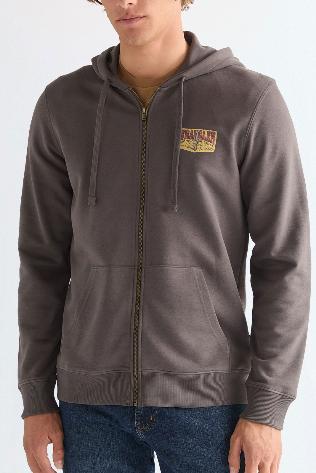 Selv om Wrangler primært er kendt for deres jeans, har de et udvidet sortiment. Du kan matche dine jeans med en Wrangler T‑shirt med tryk. De bliver ofte inspireret af tidsperioder som 70'erne, og det kommer til udtryk på trøjer og T-shirts.