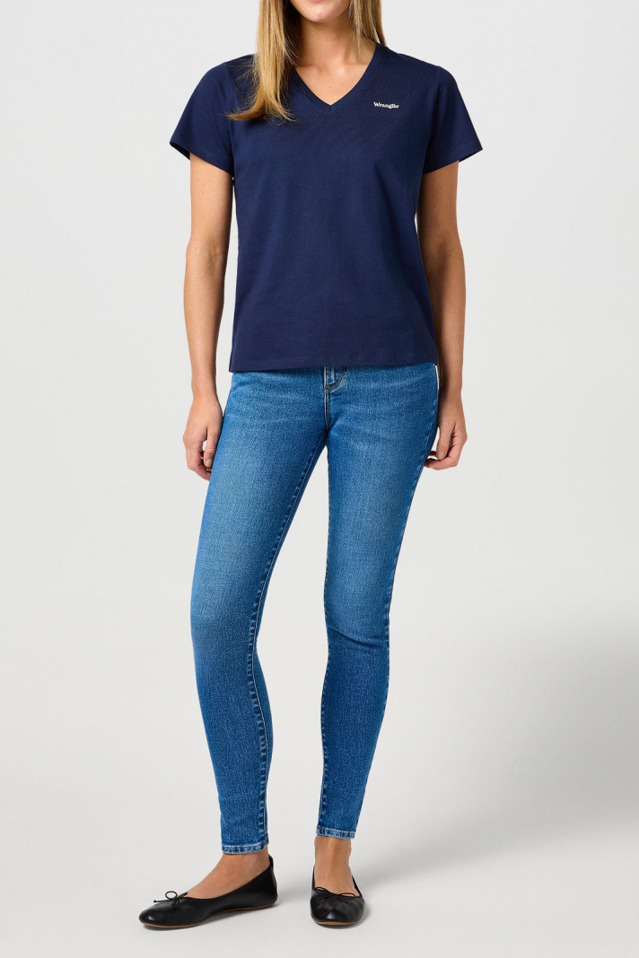Selv om Wrangler primært er kendt for deres jeans, har de et udvidet sortiment. Du kan matche dine jeans med en Wrangler T‑shirt med tryk. De bliver ofte inspireret af tidsperioder som 70'erne, og det kommer til udtryk på trøjer og T-shirts.