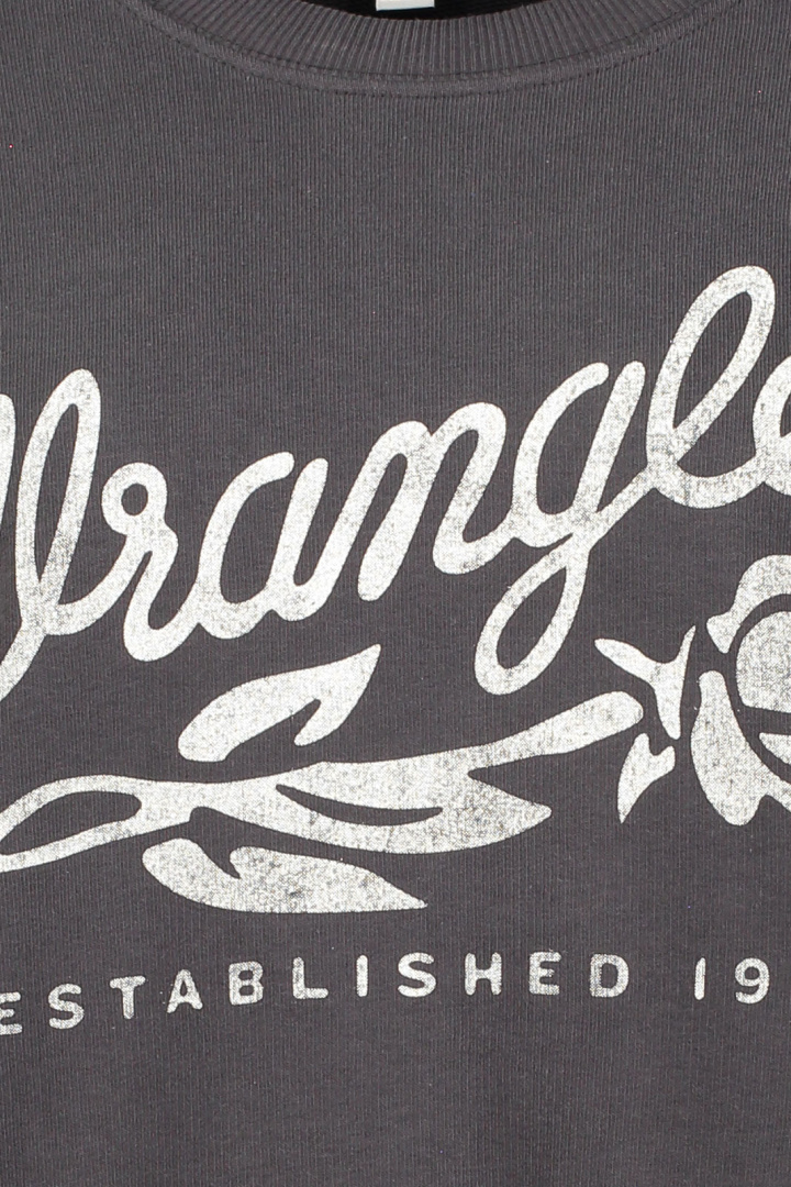 Selv om Wrangler primært er kendt for deres jeans, har de et udvidet sortiment. Du kan matche dine jeans med en Wrangler T‑shirt med tryk. De bliver ofte inspireret af tidsperioder som 70'erne, og det kommer til udtryk på trøjer og T-shirts.